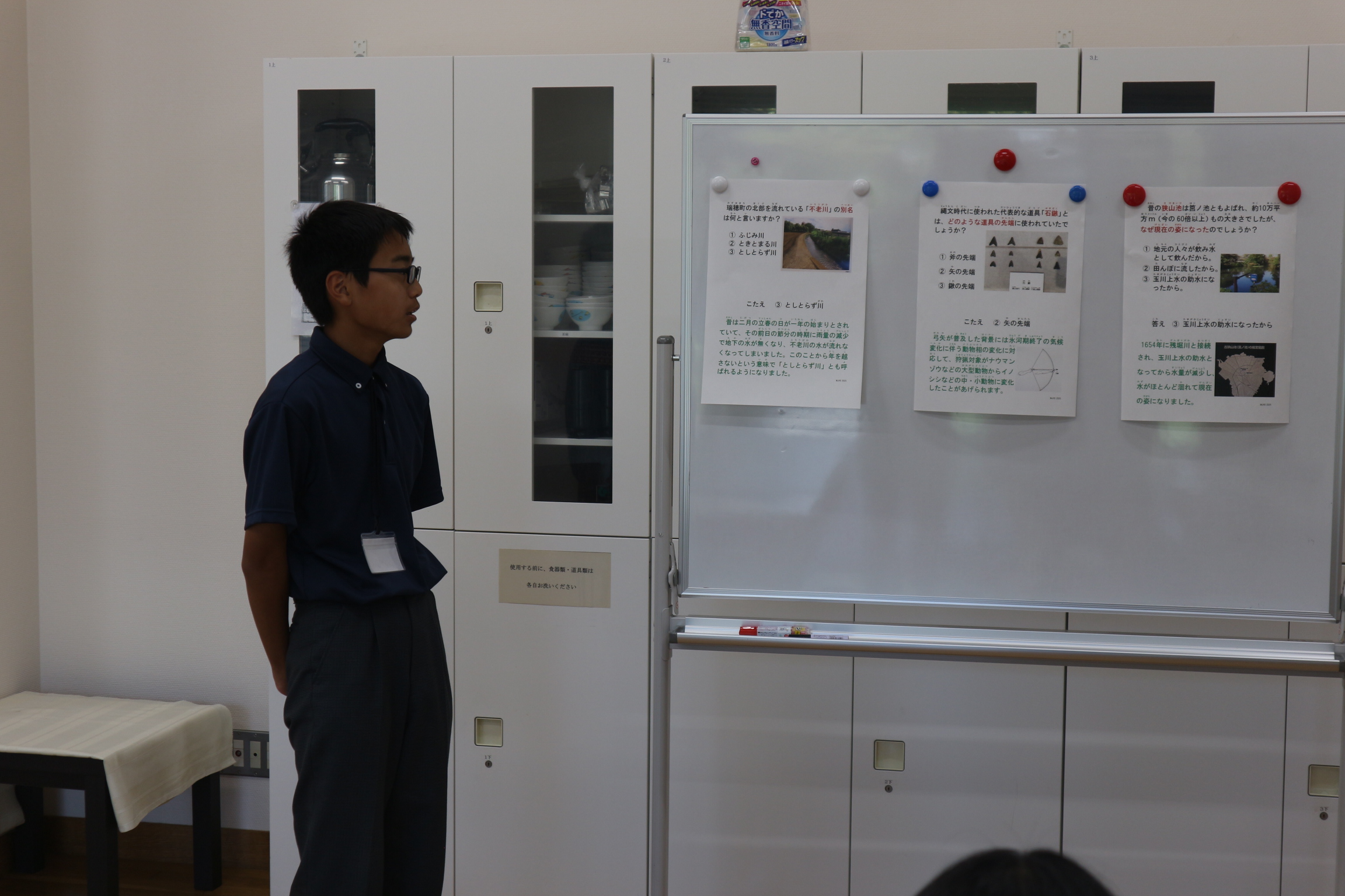 その後、めくりクイズを常設展示室に設置します。