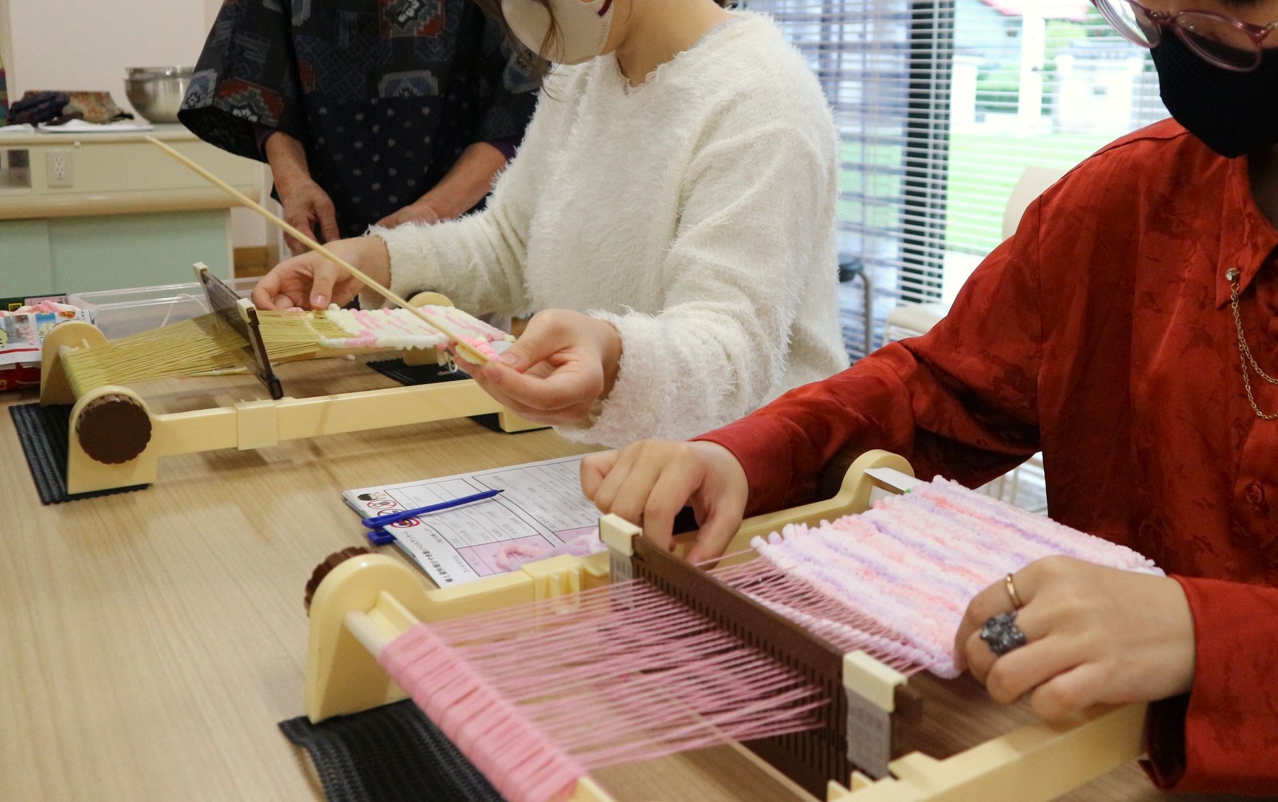 織り姫会の方と参加者さんとのほっこりする作業風景が見られました。