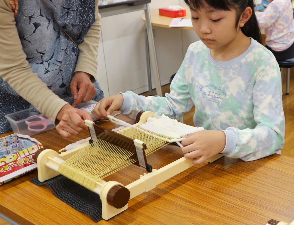 10月11日(土)に、卓上機織り体験教室「ふわもこモールで織るサコッシュ」を行いました。