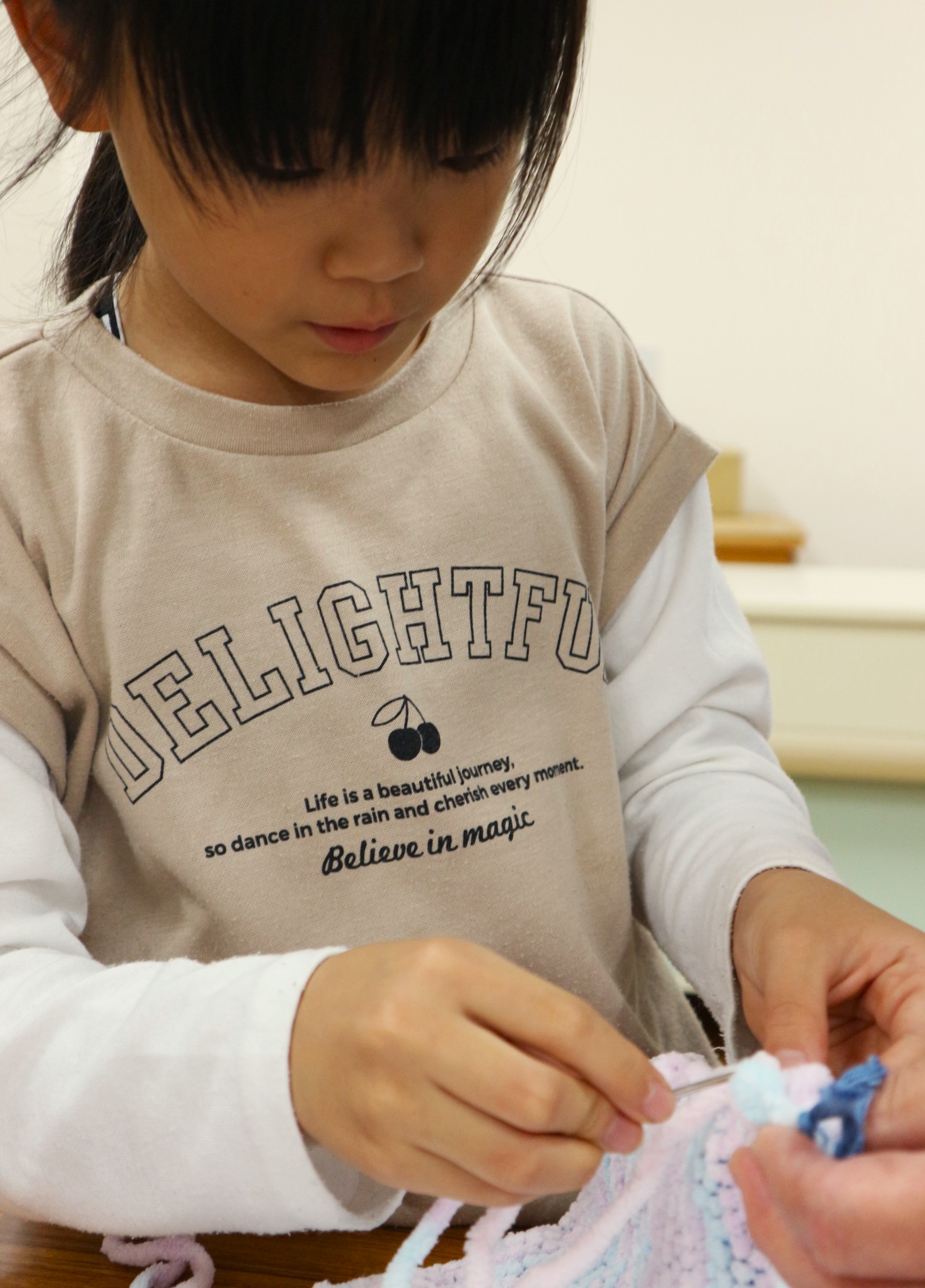 「とても根気のいる作業でしたが、子どもでも頑張れる様にフォローして頂いたお陰でとってもステキなものが完成し、大満足です。」
