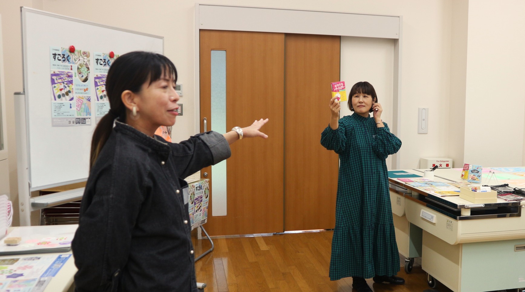 講師に、アナログゲームの制作・販売や、商品のデザインなどをされている、デザインユニットmokumuku works(モクムクワークス)の目澤知佳さんと志村恵さんをお迎えしました。