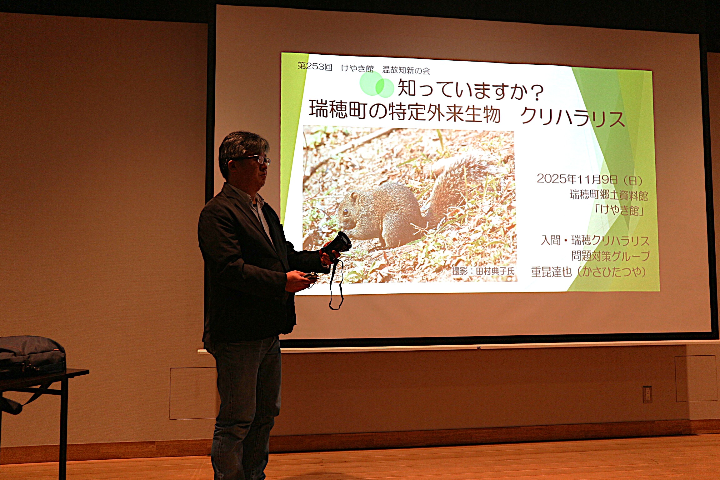 本日けやき館では、第253回 温故知新の会「知っていますか? 瑞穂町の特定外来生物 クリハラリス」を開催しました。