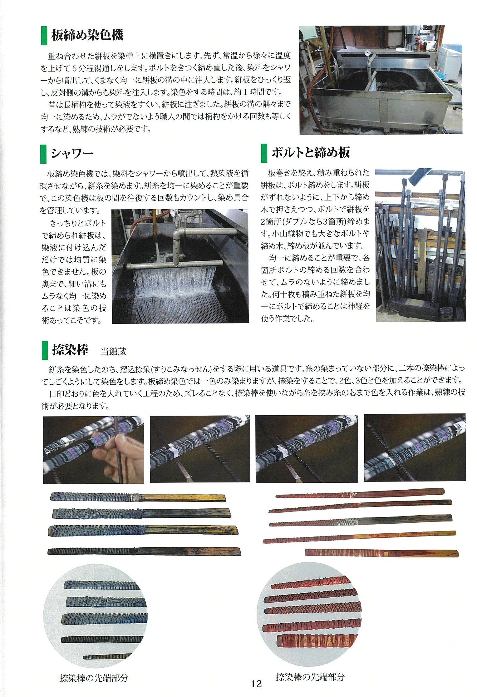 村山大島紬の板締め染色に関する資料を多く載せています。特に絣板については、溝を彫る手順や染色の手順などを詳しく解説しています。