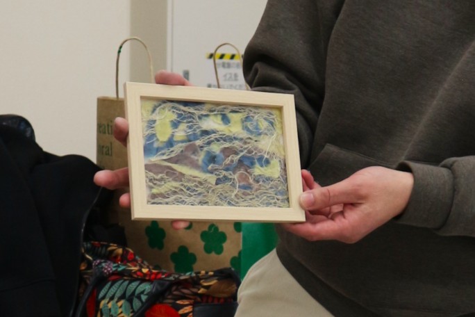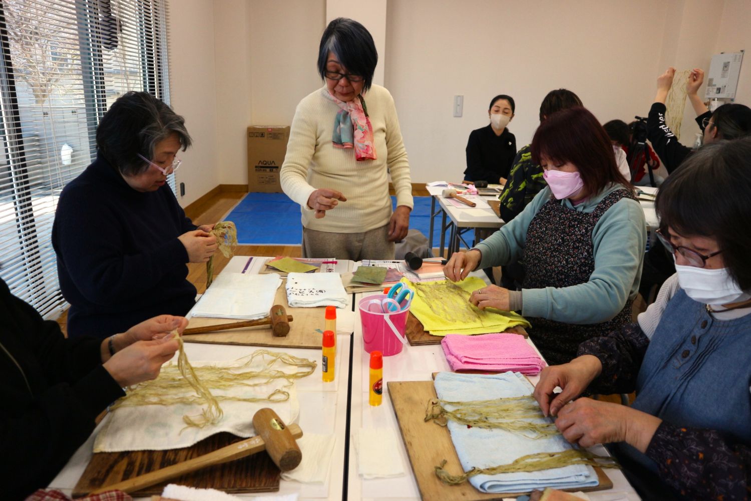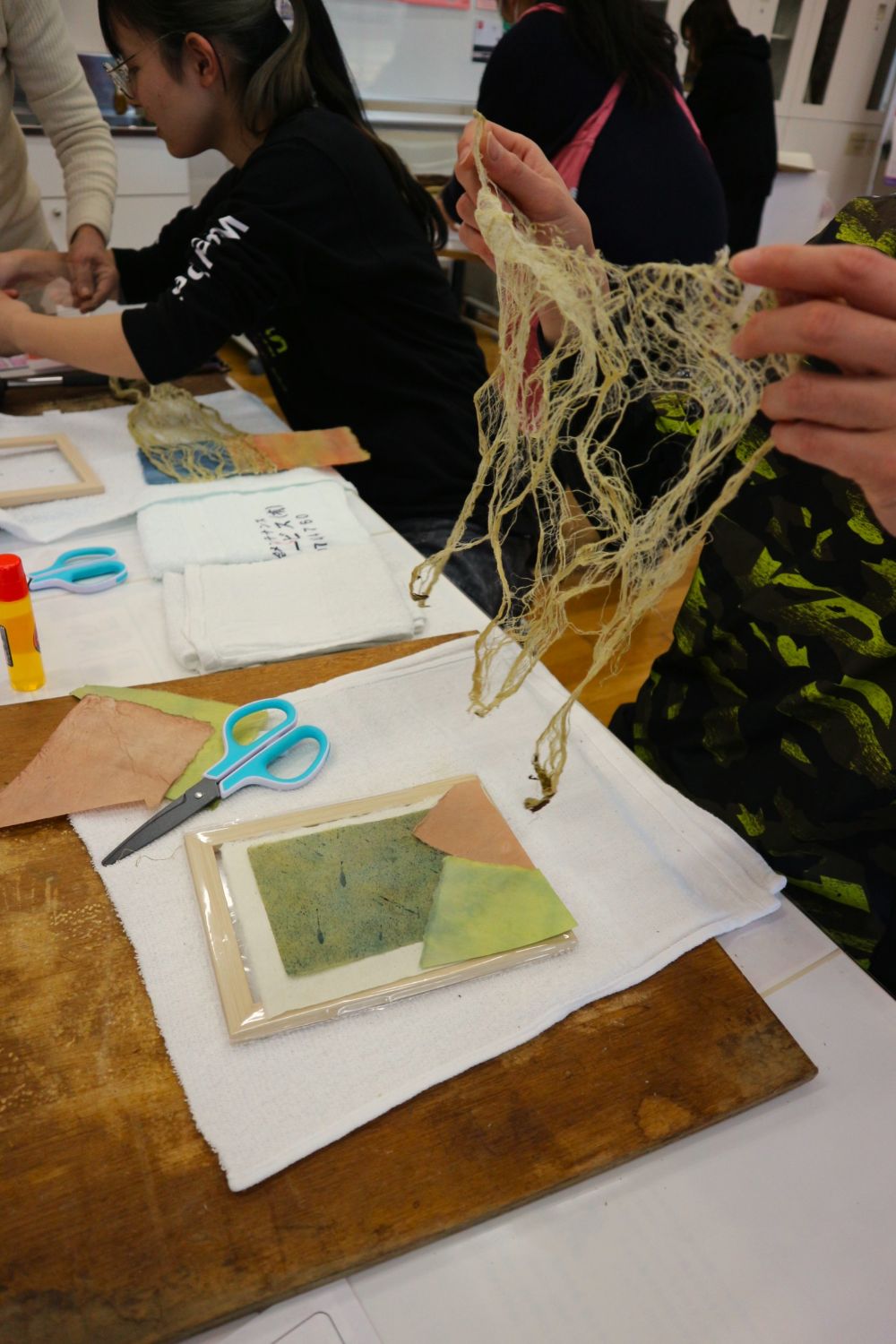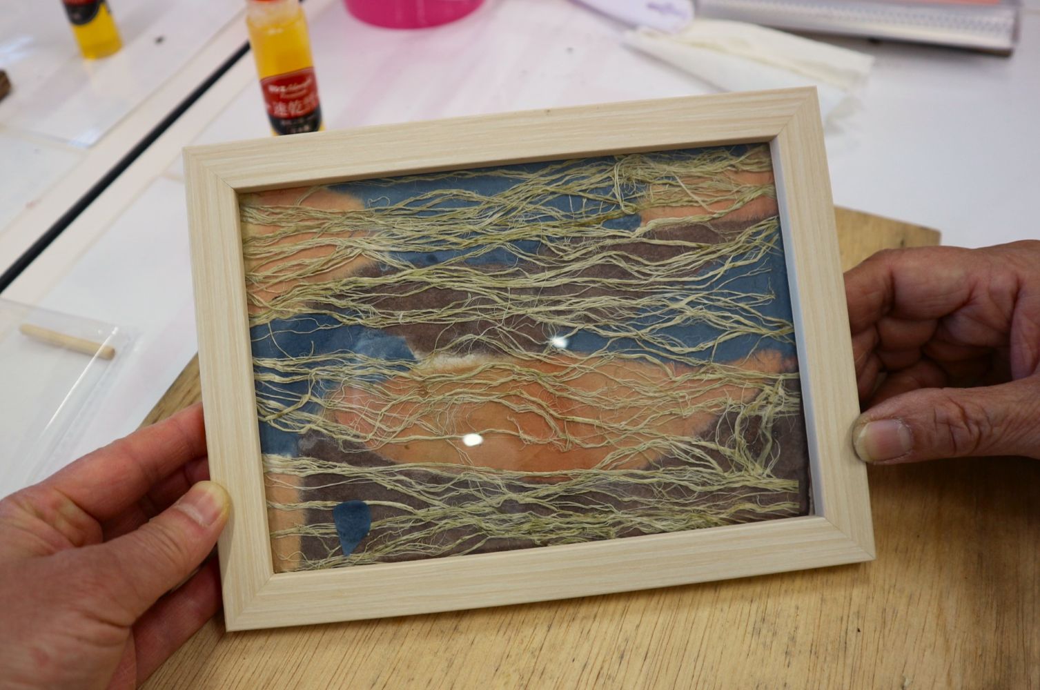 和紙造形作家の加茂孝子さんを講師に、和紙の原料である楮(こうぞ)そのものを使って、インテリアカードを作りました。