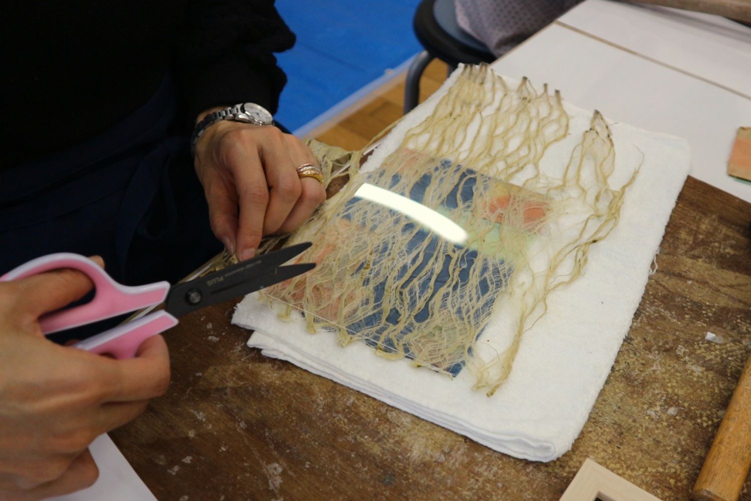 和紙の体験教室と聞くと「紙漉き」をイメージする方が多いと思いますが、今回のこの教室では、