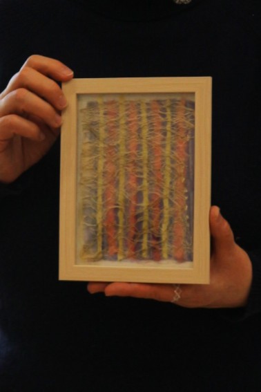 <色和紙の縦ストライプに対して、楮を横向きに入れています>