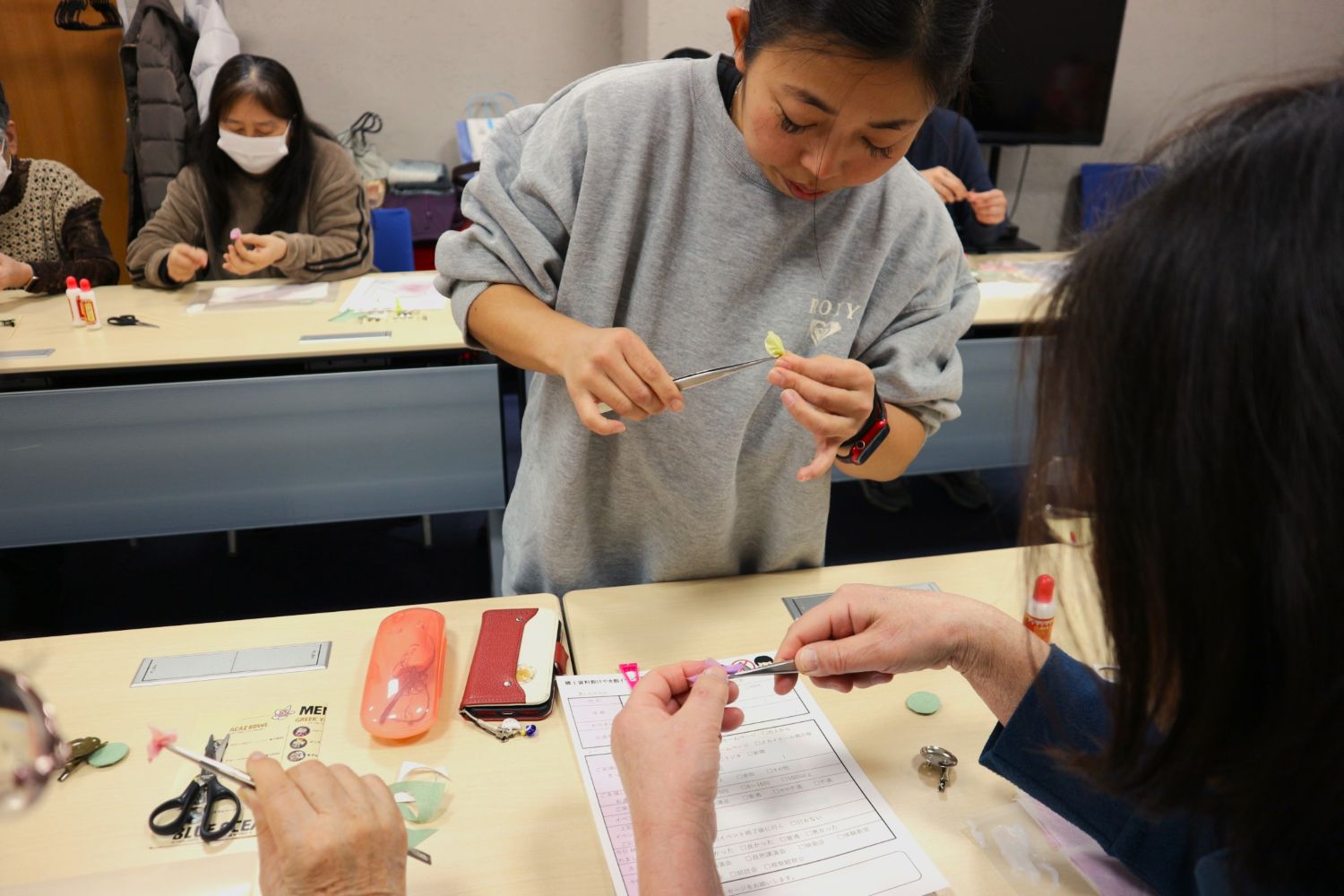 リピーターの方も、初めてつまみ細工を体験するという方もいらっしゃいましたが、みなさんとても楽しんでいただけたようです。