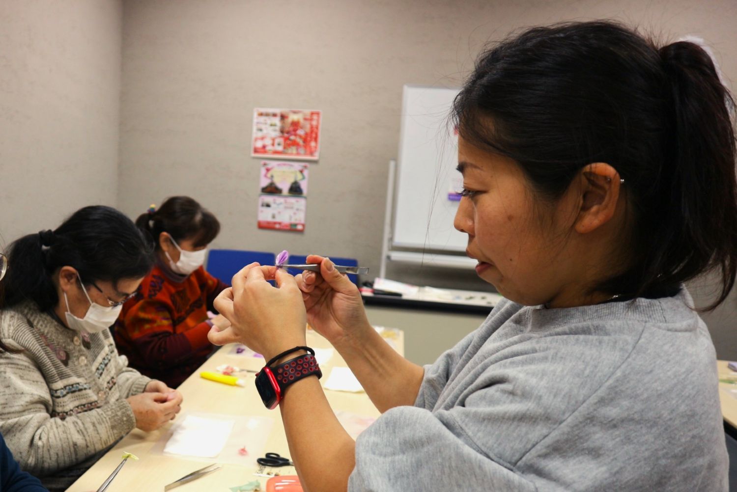 つまみ細工体験教室「羽二重の花飾り」を2月7日(土)に行いました。