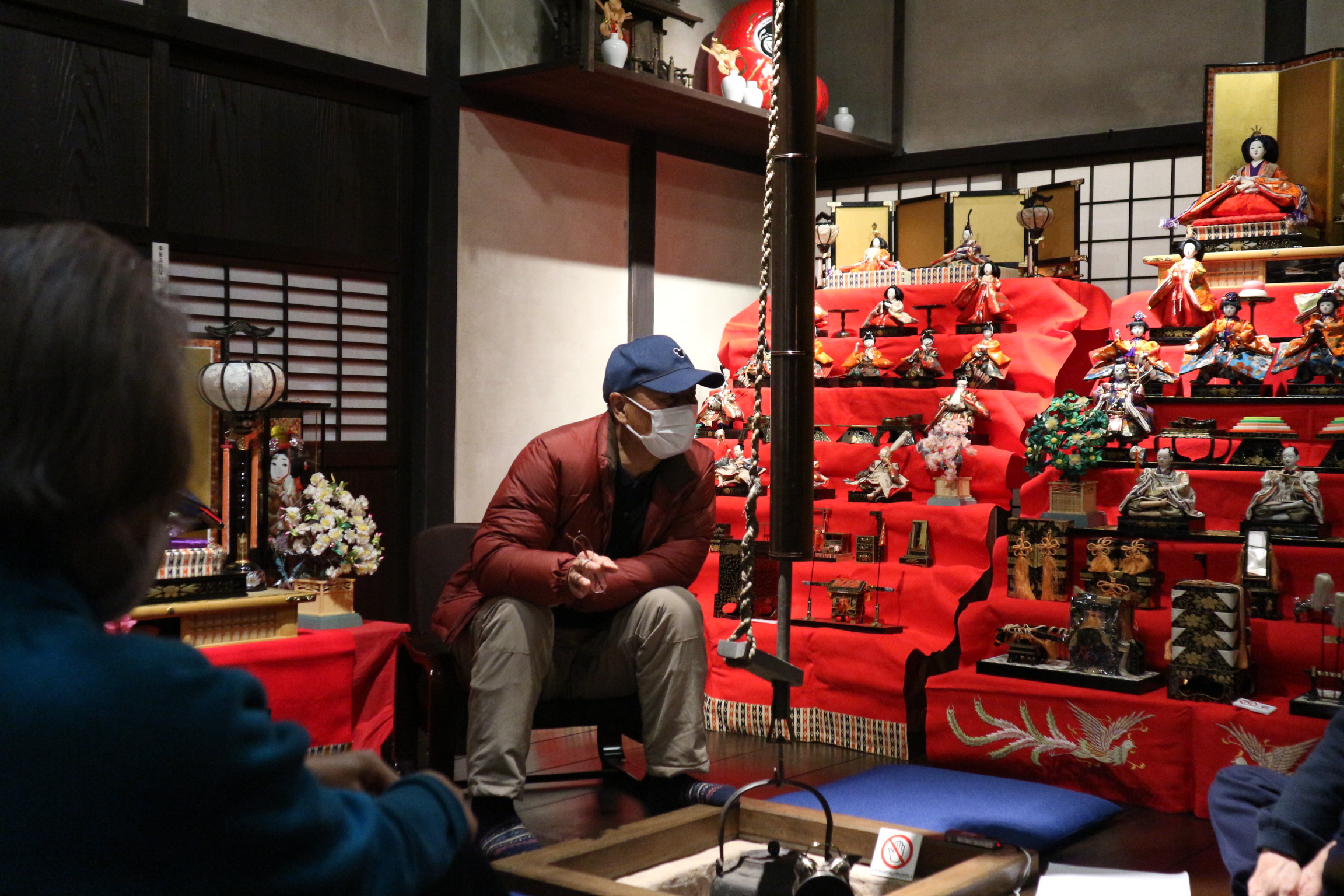 ちょうどつるし飾りの時期なので、お雛様に囲まれてお話しいただきました。
