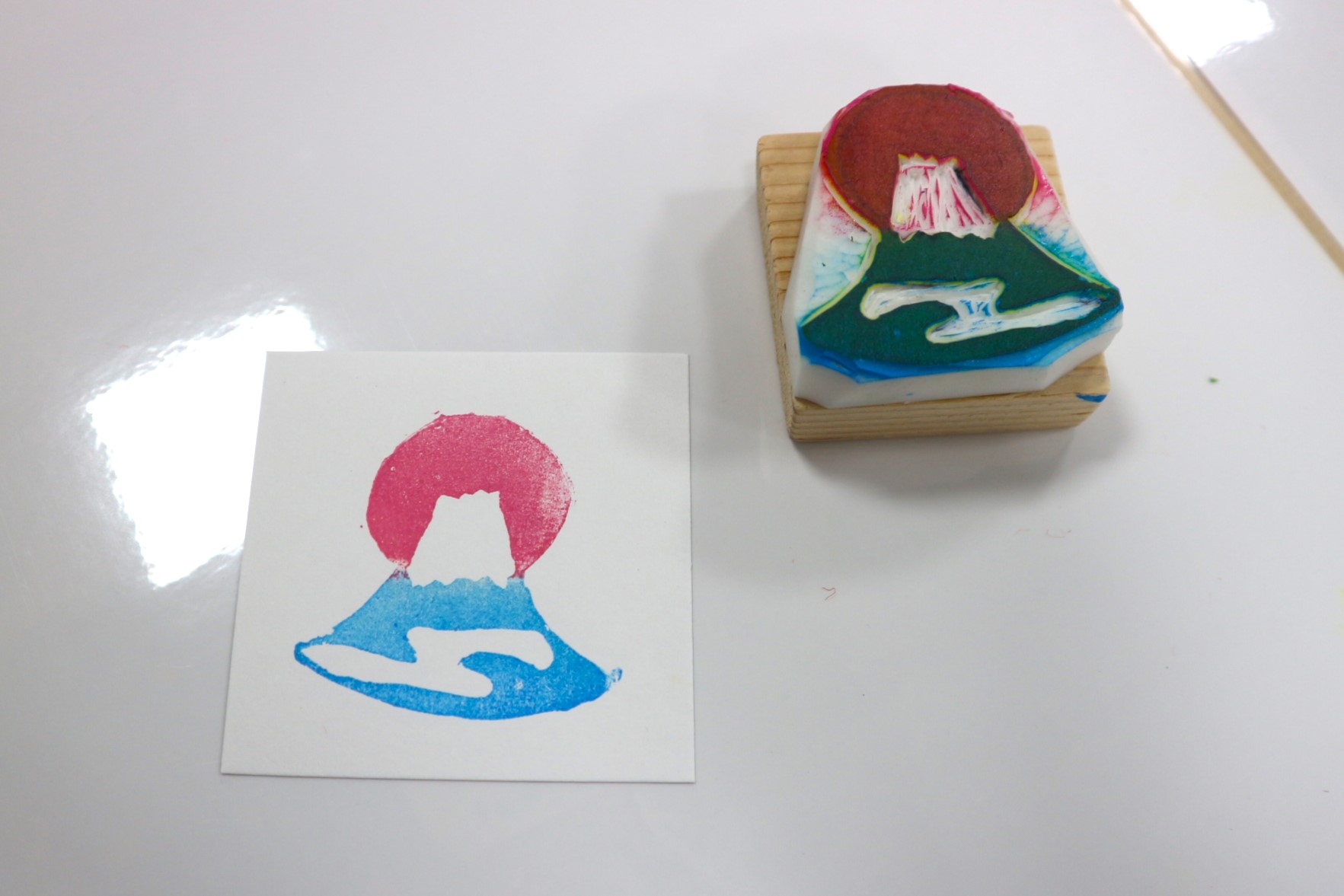 自分で彫ったハンコを押すのは楽しいですね。やはりみなさん夢中です。
