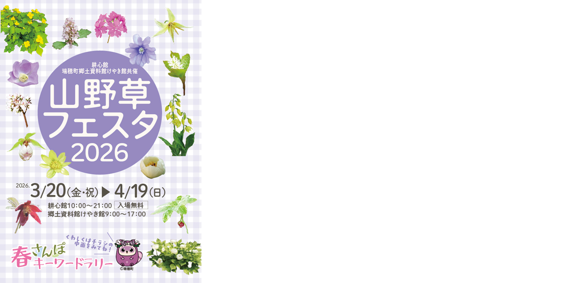 ※「山野草フェスタ2026」のチラシは、瑞穂町郷土資料館けやき館、耕心館、さやま花多来里の郷にあります。