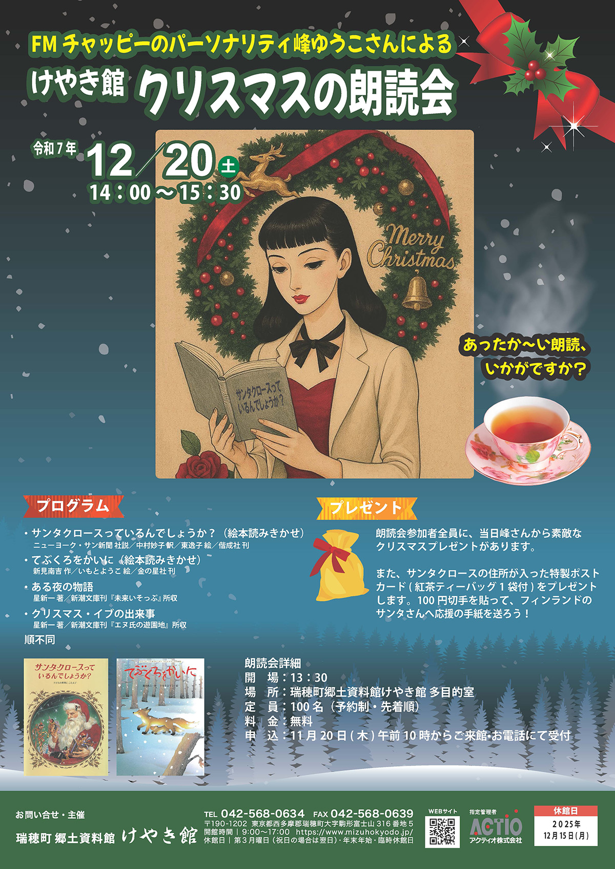 けやき館 クリスマスの朗読会 あったか〜い朗読、いかがですか?