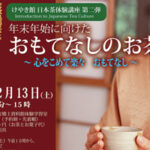 けやき館 日本茶体験講座 第二弾 年末年始に向けたおもてなしのお茶 ~ 心をこめて楽々 おもてなし ~ 今回の講座内容 実際に様々なお茶やお菓子を味わいながら、以下のことを学びます。 ●おもてなし用の煎茶・冷茶の淹れ方 […]